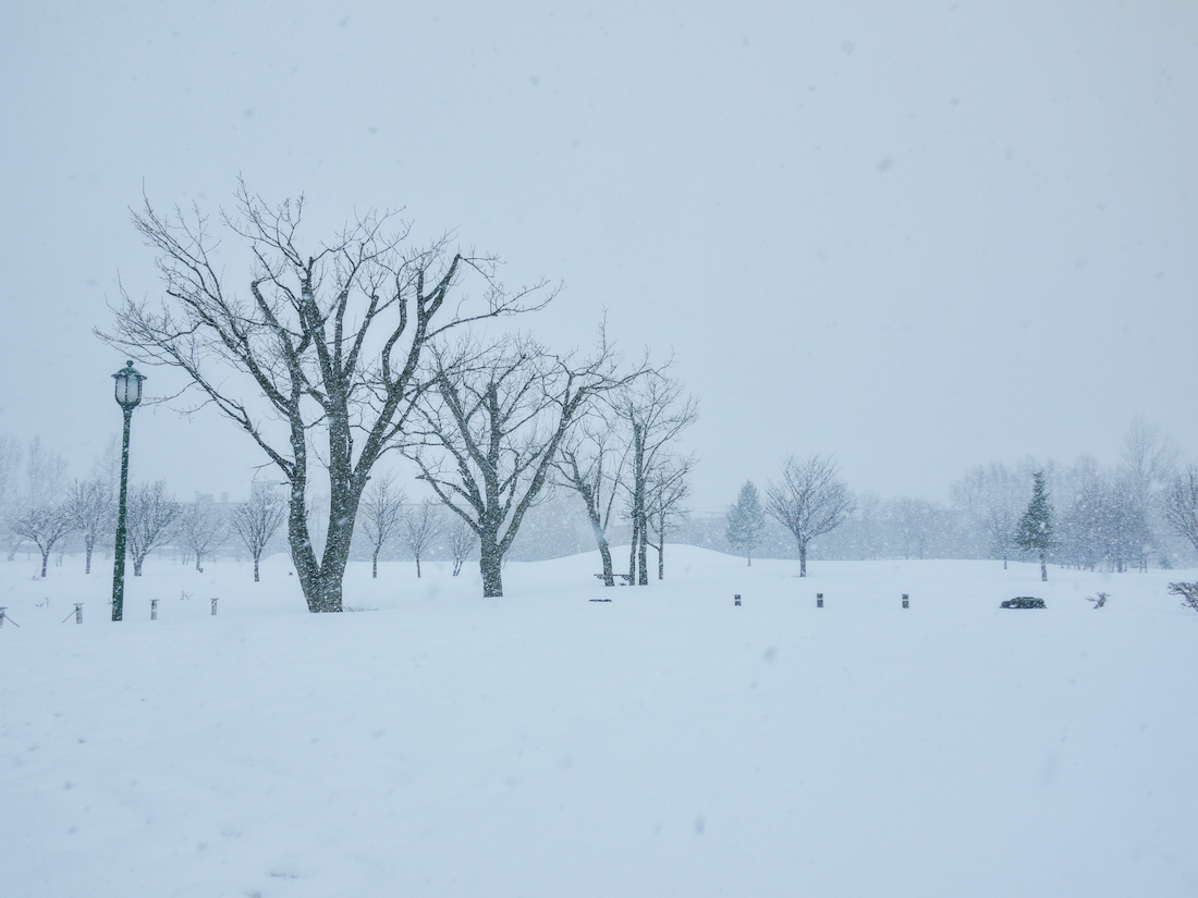 またやってしまったと思っていると、来る途中から降り出した雪が、どんどん本降りになって遠くの視界がぼんやりしてしまうくらいになった。